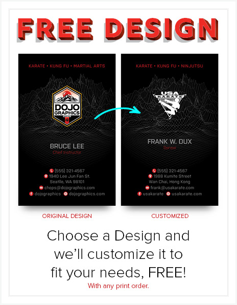You are the defensive specialist. Let DojoGraphics.com balance your approach with offensive planning. Choose any of our original premium designs and we will customize it to fit your needs at no additional charge. And the best things is, once your order is complete, we will even ship to you FREE!